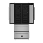 Store your collection in style with the Forno Campania 32" Dual Zone Wine Cellar & Beverage Cooler. Optimized for red and white wine storage, it features twenty telescopic shelves that hold up to 120 bottles, while two stainless-steel drawers organize up to 228 cans. A sleek stainless-steel finish and triple-layer anti-UV glass doors protect your wines, while a touchpad controller with a blue LCD display ensures precise temperature control. LED lighting beautifully showcases your selection, and a charcoal air filter keeps the interior fresh. Built for seamless installation, this quiet, energy-efficient cooler delivers the perfect balance of style and performance for any kitchen or bar.