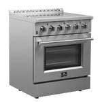 The Forno Galiano 30 Inch Freestanding Pro-Style Electric Range elevates your home kitchen with professional styling and enduring quality, featuring a robust stainless-steel design. Boasting 4 radiant elements, the cooking surface delivers a total output of 6,500 watts. The 4.32 cu. ft. capacity true convection oven enhances cooking flexibility with a combined broil and bake output of 4,800 watts, complemented by a 1,500 watts true convection fan for precision. This unit includes 2 electroplated oven racks, an Air Fryer kit, and a 4-prong power cord (NEMA 14-50P), providing both versatility and convenience.