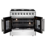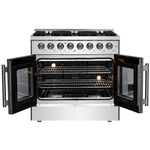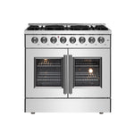 Our 36" Galiano Dual Fuel French Door Range blends timeless design and high performance. This range adds sophistication to any kitchen at an affordable price. The cooktop boasts six sealed burners with a total output of 83,000 BTU, including a 20,000 BTU dual-ring burner ideal for boiling, searing, or simmering delicate sauces. The heavy-duty cast iron grates provide a stable surface and allow you to slide cookware effortlessly across the cooktop. Its spacious 5.36 cu.ft. true convection oven delivers even heat distribution, powered by 6,300 watts, for perfectly baked and roasted dishes. Easy-to-clean black enamel interiors, French door convenience, and included electroplated racks make this range as practical as it is beautiful. Complete with an LP conversion kit and NEMA 14-50 power cord, the Galiano Range is built for both style and efficiency.