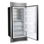 The Forno Maderno 28-inch refrigerator offers a built-in look with a decorative grill to upgrade it to 32-inch width for seamless kitchen integration. Available in black and featuring antique brass handles, it’s part of our elegant Espresso line. With 13.6 cu.ft. of capacity and a Convertible Cooling Zone, it delivers flexible storage and functionality. Total No-Frost Technology eliminates manual defrosting, while the Metal Multi-Airflow system maintains consistent freshness. Inside, 3 glass shelves and 3 drawers with silver trims maximize organization. The swing door design and intuitive electronic touch control panel enhance everyday convenience. VCM doors, a metal back panel, and Energy Star Certification ensure durability and efficiency.