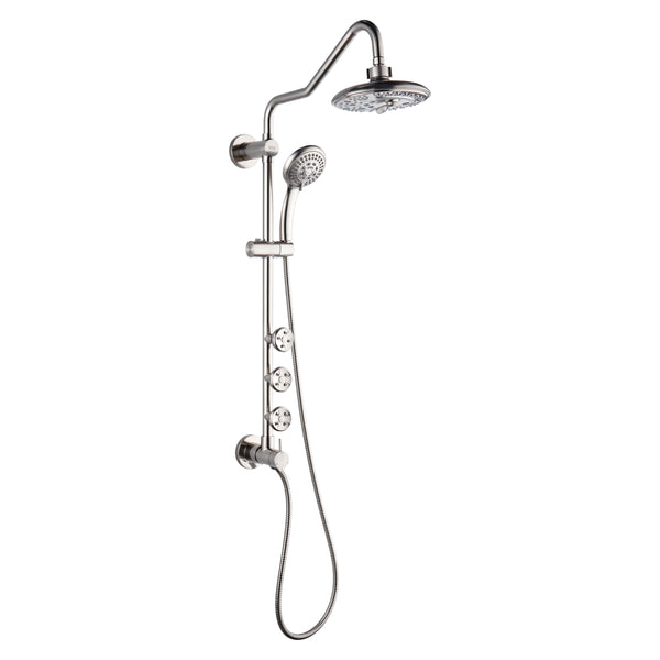 Elevate your daily routine with the FORNO ACQUA AcquaSPA Wall-Mounted Shower Column featuring a patented 6 function 8" rainfall shower head, 5 function handheld shower wand, and three adjustable body jets for a spa-like full-body experience. With a water-saving 1.8 GPM flow rate that maintains steady pressure, this sleek stainless steel column adds bold style to modern and transitional bathrooms. The intuitive 6-way diverter allows effortless control of all outlets, and installation is very simple with standard plumbing making it the perfect upgrade for any DIY bathroom remodel or home improvement project.