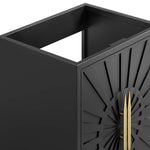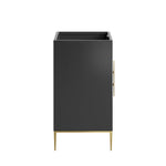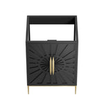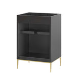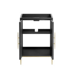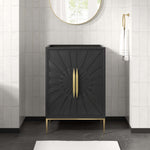 Intricate modernity radiates into your bathroom space with the Awaken 24" Bathroom Vanity Cabinet. Showcasing clean lines arranged in a radial formation, this bathroom vanity is crafted with solid wood and MDF and rests on a gold base with non-marking foot pads to protect flooring. Offering ample storage space for bathroom essentials and more, this vanity cabinet features spacious shelves hidden behind detailed doors with sleek gold hardware. Sink basin and fixtures not included. Assembly required.