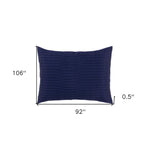 The indigo geometric king quilt offers a perfect blend of comfort and style for your bedroom. This transitional quilt is designed to enhance your space with its rich indigo hue and modern geometric patterns. Crafted specifically for king-sized beds, it ensures generous coverage and warmth. The quilt included is not only visually appealing but also provides a soft and cozy touch, making it ideal for year-round use. Elevate your bedroom decor with this stylish addition that seamlessly combines functionality and contemporary design. This quilt will create an inviting atmosphere while showcasing your personal taste. Experience luxury and comfort with this exquisite piece that transforms any sleeping space into a serene retreat. 106-inch h x 92-inch w x 0.5-inch d.