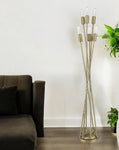 Bring of level of elegance and charm to your space with this good looking 60-inch six light torchiere floor lamp. The base of this lamp is made of brass metal. The brass base coloring infuses a warm and rich tone to your space. Add a soft warm glow to your space with this classic torchiere styled lamp. A straight pole extends upwards from a single base while the scooped shade shape refracts light upward and outward much like it's name sake,a torch. High quality design makes this a great lamp for not only lighting, but accenting a room with style. It is perfect for virtually any decor. 60-inch h x 13.25-inch w x 13.25-inch d.