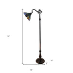 Bring of level of elegance and charm to your space with this good looking 62-inch brown torchiere floor lamp with blue and yellow flowers glass dome shade. The base of this lamp is made of brown metal. The brown base coloring infuses a warm and rich tone to your space. The brown of this lamp creates a nice contrast with the blue and yellow glass dome shaped shade. Add a soft warm glow to your space with this classic torchiere styled lamp. A straight pole extends upwards from a single base while the scooped shade shape refracts light upward and outward much like it's name sake,a torch. High quality design makes this a great lamp for not only lighting, but accenting a room with style. Bring some lite and good vibes into your space with this updated and stylishly designed lamp. 62-inch h x 12-inch w x 12-inch d