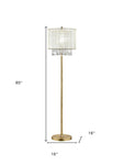 This 65-inch gold and white novelty floor lamp with white fabric drum shade is a great way to add some brightness to any corner of your home. The lamp is made of sturdy metal and features a gold color. The gold base coloring infuses a warm and rich tone to your space. The coloration of the gold lamp base creates a fashionable marriage with the the white fabric drum shaped shade. Designed to be unique and visually pleasing while giving great light, this novelty lamp will bring some fun fashion and style to your space high quality design makes this a great lamp for not only lighting, but accenting a room with style. The perfect lamp to create just the right natural and soothing light in your space. 65-inch h x 16-inch w x 16-inch d.