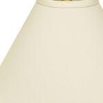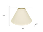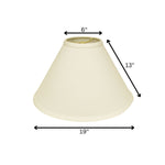 This Ivory Deep Cone Slanted No Slub Lampshade has a hint of traditional flair and will be a great addition to your lamp base. This hardback lampshade includes a standard washer fitter that fits over a standard harp and can be used with your existing finial design. This high quality crafted drum shape has a slight slant to give it some visual interest and is crafted of the finest no slub innsbruk cotton with a fold on top and bottom of the shade. 13" x 19" x 19"