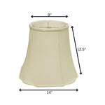 The ivory monay shantung silk bell lamp shade adds an elegant touch to any room. Crafted from luxurious monay shantung silk, this shade features a classic bell shape that complements traditional decor beautifully. The top measures 9 inches both in width and depth, making it a versatile choice for various lamp bases. Designed for a spider attachment, it ensures a secure fit while enhancing your lighting experience. The timeless ivory color contributes a soft, sophisticated glow, perfect for creating a warm ambiance in your home. Suitable for a range of wattages, this lampshade is both functional and stylish, making it an ideal addition to your interior design. 13.00-inch h x 14.00-inch w x 14.00-inch d.