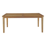 Harbor your greatest expectations with the luxurious Marina Teak Wood Outdoor Patio 72" Dining Table. Marina Patio Dining Table has a seating arrangement perfect for every member of your crew as you breathe the fresh, crisp air of a day spent with friends and family. Known for its natural ability to withstand extreme weather conditions, teak is the wood selection of choice for long-lasting outdoor patio furniture. Now you can enjoy Marina Teak Wood Outdoor Dining Table with its durable construction, alongside a modern design that persistently looks new and welcoming in your patio dining environs. Assembly required.
