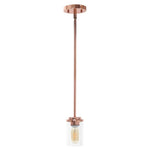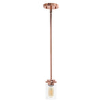 This beautiful rose gold and clear cylinder iron ceiling light with clear shades will brighten up and change the look of your room. This light will require hardwiring installation. Get creative and change up the look of any room from hallway, to closet, to office or bedroom with this gorgeous hanging chandelier light fixture. 53.00-inch h x 5.01-inch w x 4.75-inch d.