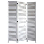 Professionally style and organize your home space with this gorgeous White Louvered Panel Room Divider Screen. This structurally sound screen is made from quality wood construct that gives the piece a natural and contemporary aesthetic. The three-framed construction of this screen allows for an easy foldable decor piece that can be displayed as well as stored away as needed. The clean, white paneled design of this screen provides a sleek and modern look and feel. This stylish item is multifaceted in its use, acting as not only a decorative screen but also a room divider, providing you the luxury of room seperation for privacy and or closed-off cozy corners ideal for relaxation. 67" x 47" x 1"
