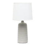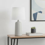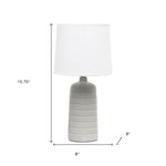 Bring of level of elegance and freshness to your space with this high quality 16-inch taupe ceramic table lamp with white drum shade. The base of this lamp is made of ceramic finished in a taupe tone. The white shade has a drum shape and is made of fabric, which makes it a perfect choice. This standard table lamp is designed to provide general lighting to the area. High quality design makes this a great lamp for not only lighting, but accenting a room with style. The perfect lamp to create just the right natural and soothing light in your space. 15.75-inch h x 8.00-inch w x 8.00-inch d.
