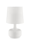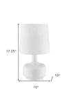 Embrace the good life with this hard working and stylish 17" white metal bedside table lamp with off-white shade. The base of this lamp is made of metal finished in a white tone. Bedside table lamps help to add a soft and cozy glow to your bedroom. Great for evening reading! High quality design makes this a great lamp for not only lighting, but accenting a room with style. It is perfect for virtually any decor. 17.25" H x 10" W x 10" D