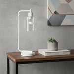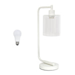 Embrace the good life with this hard working and stylish 19-inch white metal lantern table lamp led with clear cylinder shade. A gorgeous white metal base brings just the right amount of pizzazz to this fabulous lamp. The clear cylinder glass shade is finishes this piece off nicely and symmetrically this standard table lamp is designed to provide general lighting to the area. High quality design makes this a great lamp for not only lighting, but accenting a room with style. The perfect lamp to create just the right natural and soothing light in your space. 18.80-inch h x 5.75-inch w x 9.75-inch d.