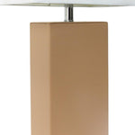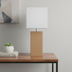 Truly a mix of design and functionality that doesn't compromise on style, this 21-inch beige faux leather table lamp led with white shade will be a great addition to your space. The base of this lamp is made of faux leather finished in a beige tone. Includes a white fabric, rectangular shaped shade, making this a fashionable piece that will complement most any interior. This standard table lamp is designed to provide general lighting to the area. Use this lamp anywhere and elevate the look of the whole space. The perfect lamp to create just the right natural and soothing light in your space. 21.00-inch h x 6.00-inch w x 10.00-inch d.