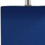 Embrace the good life with this hard working and stylish 21-inch blue faux leather usb table lamp with white shade. A gorgeous blue faux leather base brings just the right amount of pizzazz to this fabulous lamp. Includes a white fabric, rectangular shaped shade, making this a fashionable piece that will complement most any interior. This standard table lamp is designed to provide general lighting to the area. Use this lamp anywhere and elevate the look of the whole space. The perfect lamp to create just the right natural and soothing light in your space. 21.00-inch h x 6.00-inch w x 10.00-inch d.