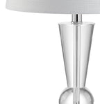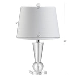 Add a bright anchor to your room with this 22-inch clear novelty table lamp led with empire shade. The base of this lamp is made of crystal finished in a clear tone. Includes a white linen, empire shaped shade, making this a fashionable piece that will complement most any interior. This standard table lamp is designed to provide general lighting to the area. Use this lamp anywhere and elevate the look of the whole space. It is perfect for virtually any decor. 22.00-inch h x 14.00-inch w x 14.00-inch d.