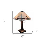 This 22-inch dark brown metal two light candlestick table lamp with ivory shade is the perfect combination of design and function. A gorgeous dark brown metal base brings just the right amount of pizzazz to this fabulous lamp. This standard table lamp is designed to provide general lighting to the area. The light that this lamp throws is soft and warm to elevate the look of most any space in your home. Bring some lite and good vibes into your space with this updated and stylishly designed lamp. 22-inch H x 21-inch W x 11-inch D