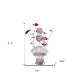 This 22-inch silver acrylic novelty bedside lamp is is a great way to add some romantic ambiance to any corner of your home. This super unique lamp will add a floral element to your space along with soft light and romantic ambiance. Combining clear, silver, and red, this mixed material lamp combines aluminum and acrylic into a shape that resembles a fan vase with flowers and will add a soft and cozy glow to your bedroom. Great for evening reading. 21.5-inch H x 4.5-inch W x 9.25-inch D