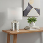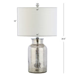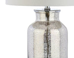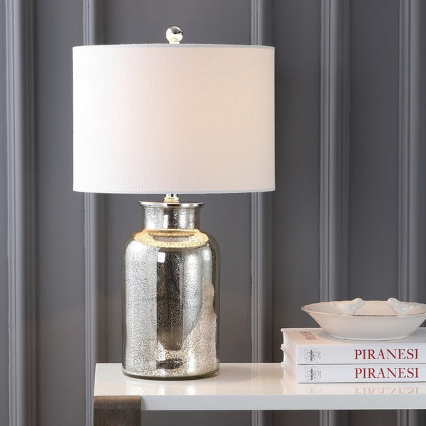 Add a bright anchor to your room with this 25-inch clear novelty table lamp led with drum shade. The lamp is made of sturdy iron and features a clear color. The white shade has a drum shape and is made from linen. This standard table lamp is designed to provide general lighting to the area. The light that this lamp throws is soft and warm to elevate the look of most any space in your home. Bring some lite and good vibes into your space with this updated and stylishly designed lamp. 24.50-inch h x 14.00-inch w x 14.00-inch d.