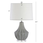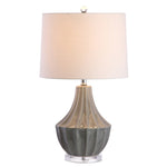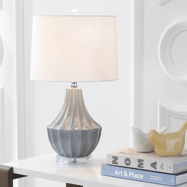 With this 25-inch clear novelty table lamp led with drum shade you can bring in design to any space along with adding some ambient lighting. The base of this lamp is made of clear acrylic. Includes a white linen, drum shaped shade, making this a fashionable piece that will complement most any interior. This standard table lamp is designed to provide general lighting to the area. High quality design makes this a great lamp for not only lighting, but accenting a room with style. The perfect lamp to create just the right natural and soothing light in your space. 24.50-inch h x 14.00-inch w x 14.00-inch d.