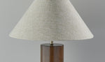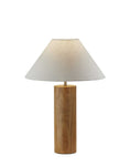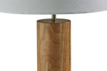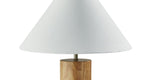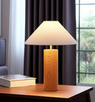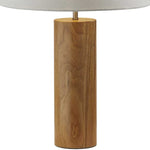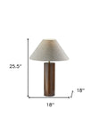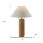 This 26-inch natural solid wood cylinder table lamp with white cone shade is the perfect combination of design and function. The lamp is made of sturdy solid wood and features a natural brown color. The white textured fabric shade has a cone shape. High quality design makes this a great lamp for not only lighting, but accenting a room with style. The perfect lamp to create just the right natural and soothing light in your space. 25.5-inch H x 18-inch W x 18-inch D