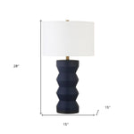 This 28-inch navy blue ceramic table lamp with white drum shade is a great way to add some brightness to any corner of your home. The lamp is made of sturdy ceramic and features a navy blue color. The white shade has a drum shape and is made from fabric. This standard table lamp is designed to provide general lighting to the area. High quality design makes this a great lamp for not only lighting, but accenting a room with style. Bring some lite and good vibes into your space with this updated and stylishly designed lamp. 28-inch H x 15-inch W x 15-inch D