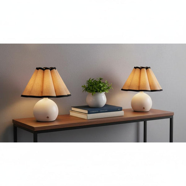 This set of two 11-inch clear novelty table lamps led with empire shades is a great way to add some brightness to any corner of your home. A gorgeous clear iron base brings just the right amount of pizzazz to this fabulous lamp. Includes a brown linen, empire shaped shade, making this a fashionable piece that will complement most any interior. This standard table lamp is designed to provide general lighting to the area. Integrated led technology is energy efficient and gives this lamp a cool and modern look high quality design makes this a great lamp for not only lighting, but accenting a room with style. The perfect lamp to create just the right natural and soothing light in your space. 10.50-inch h x 10.00-inch w x 10.00-inch d.