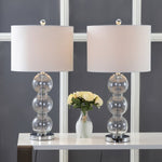 Truly a mix of design and functionality that doesn't compromise on style, this set of two 27-inch silver novelty table lamps led with drum shades will be a great addition to your space. The lamp is made of sturdy iron and features a silver color. The white shade has a drum shape and is made of linen, which makes it a perfect choice. This standard table lamp is designed to provide general lighting to the area. The light that this lamp throws is soft and warm to elevate the look of most any space in your home. The perfect lamp to create just the right natural and soothing light in your space. 27.00-inch h x 14.00-inch w x 14.00-inch d.