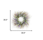 Made to mimic the real thing, this artificial wreath stays green year after year, with no watering needed. This lovely wreath makes a wonderful gift and is sure to brighten someone's day. Featuring a traditional design, this circular wreath adds a classic touch to your decor. Its vibrant purple color creates a striking visual, perfect for any covered outdoor space. Crafted from durable styrofoam, this wreath is built to last while holding its shape beautifully. Ideal for those who appreciate the beauty of nature without the upkeep. 30.5-inch h x 30.5-inch w x 9-inch d.