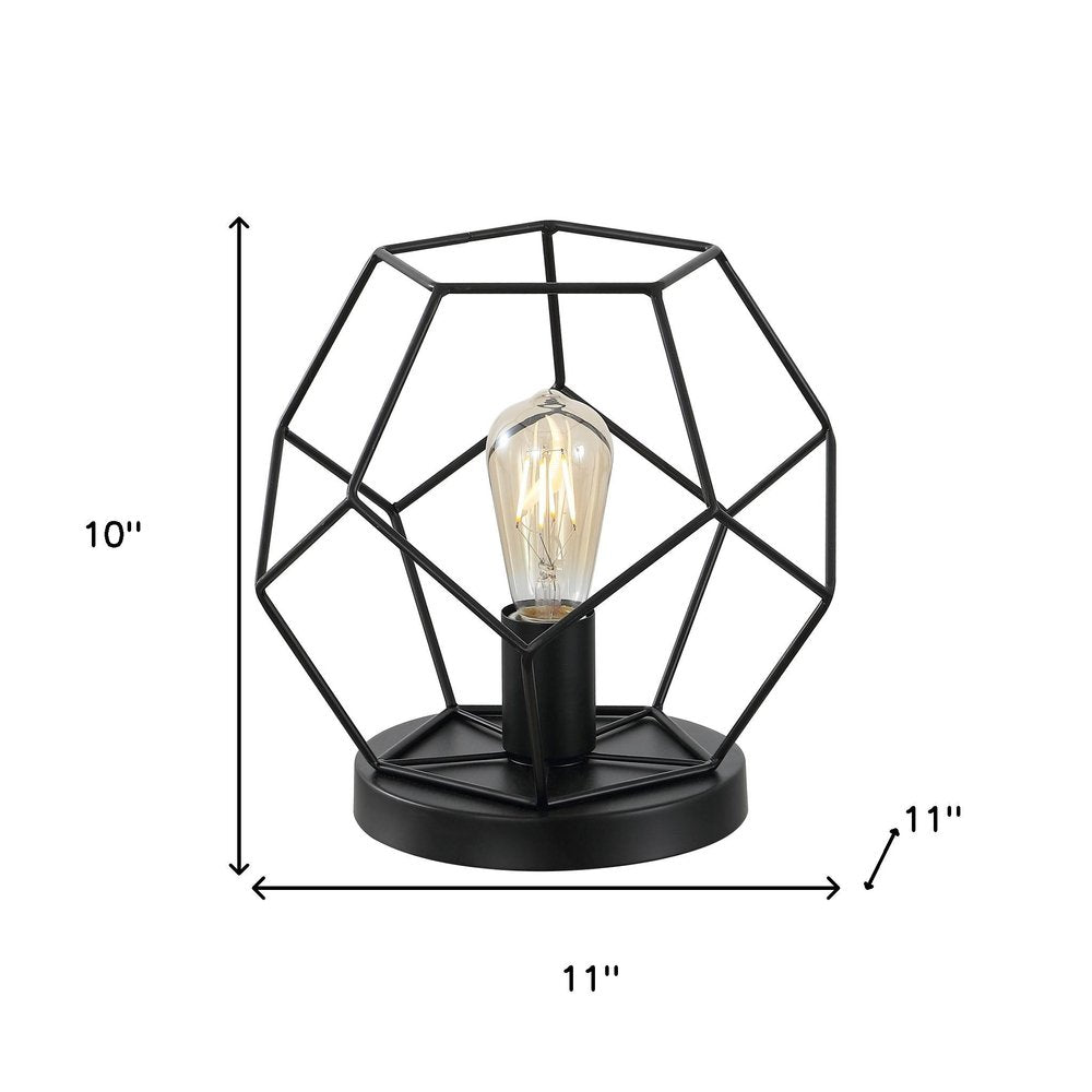 Add a bright anchor to your room with this 10-inch black geometric table lamp led. The lamp is made of sturdy iron and features a black color. This standard table lamp is designed to provide general lighting to the area. The light that this lamp throws is soft and warm to elevate the look of most any space in your home. The perfect lamp to create just the right natural and soothing light in your space. 10.00-inch h x 11.00-inch w x 11.00-inch d.