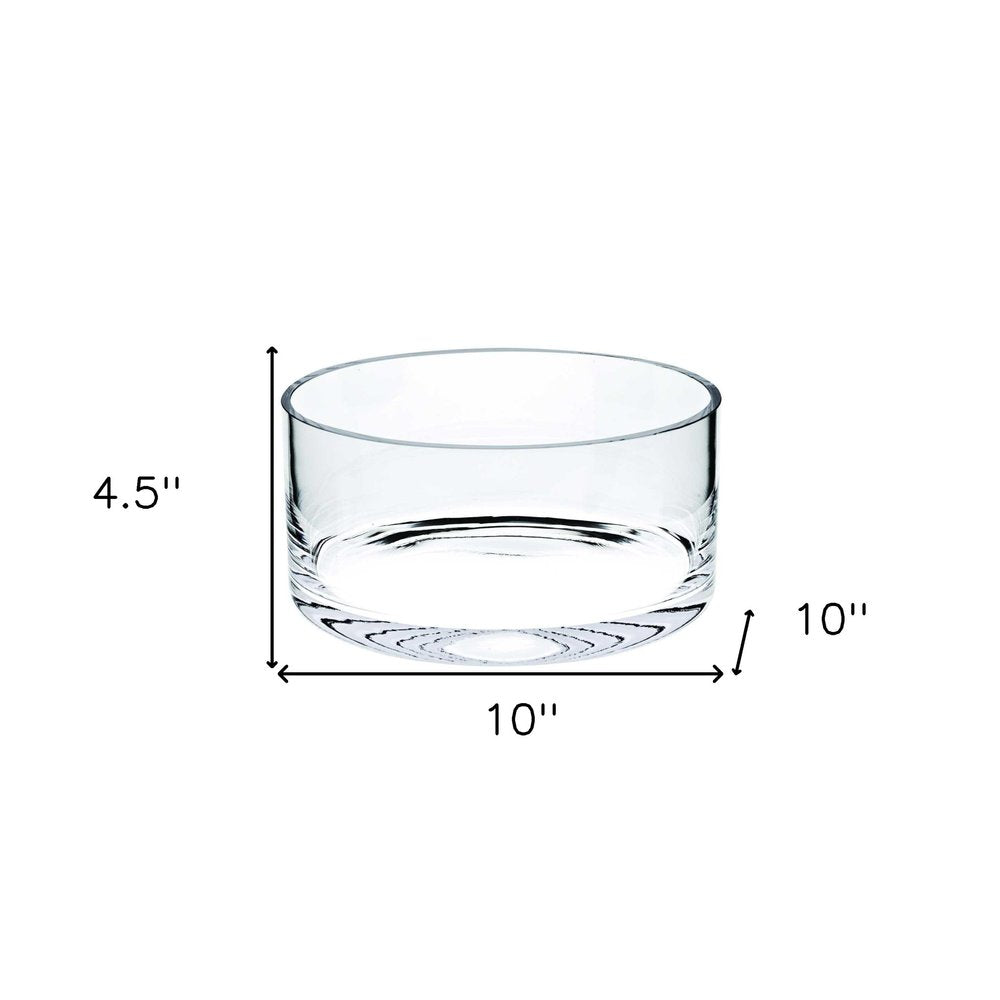 Gorgeous and practical, this Mouth Blown Crystal European Made Crystal Bowl is a great addition for your home or as a gift. This high grade crystal bowl with straight sides is an updated modern twist on a classic. Ideal for everything from serving salad to filling with decorative orbs, this clear crystal bowl is impressive. 4.5-inch H x 10-inch W x 10-inch D