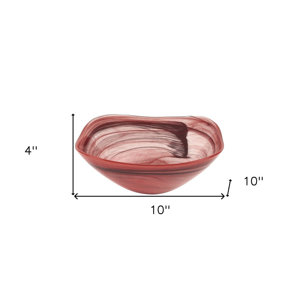 10" Red And White Alabaster Glass Square Salad Bowl