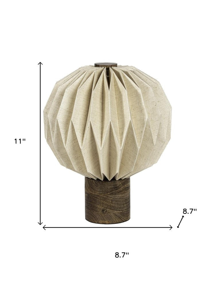 This 11-inch natural geometric bedside lamp with globe shade is a great way to add some brightness to any corner of your home. The base of this lamp is made of natural solid wood. The natural shade has a globe shape and is made of paper, which makes it a perfect choice. Bedside table lamps help to add a soft and cozy glow to your bedroom. Great for evening reading. High quality design makes this a great lamp for not only lighting, but accenting a room with style. It is perfect for virtually any decor. 11.00-inch h x 8.70-inch w x 8.70-inch d.
