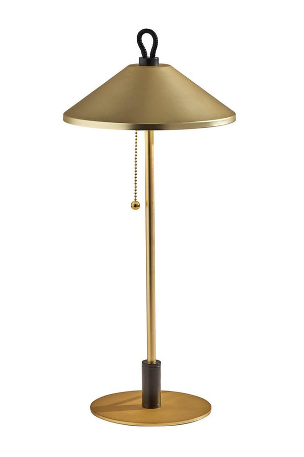20" Black and Gold Metal Two Light Candlestick LED Table Lamp With Brass Cone Shade