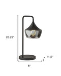 20" Black Metal Table Lamp With Black Metal And Smoked Glass Shade