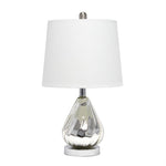 21" Silver Glass And Metal Round Scalloped Table Lamp With White Drum Shade