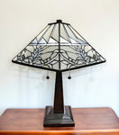 22" Dark Brown Metal Two Light Candlestick Table Lamp With White Empire Shade