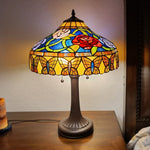 23" Dark Brown Metal Two Light Candlestick Table Lamp With Red and Black Shade
