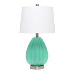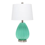 23" Sea Green And Silver Geometric Lines Table Lamp With White Drum Shade