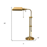 26" Bronze Metal Adjustable Table Lamp With Antiqued Brass Rectangular Shade
