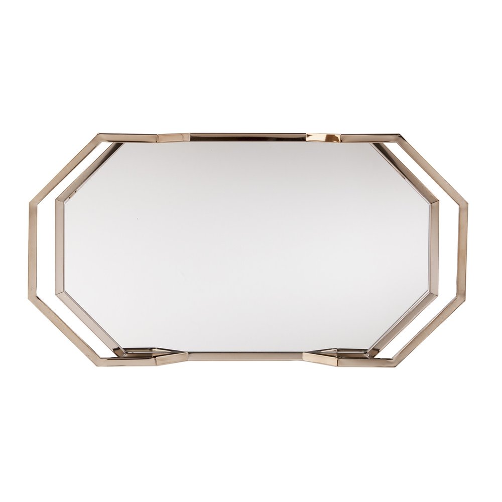The 31-inch champagne iron and mirrored glass octagonal rolling bar cart is the perfect blend of style and functionality. Crafted with a sturdy iron frame, this bar cart boasts a metallic finish that adds a touch of elegance to any space. The mirrored glass top enhances its sophisticated look while providing a reflective surface for your favorite drinks. Its irregular octagonal shape not only stands out but also maximizes surface area for serving. Additionally, the champagne color offers a warm, inviting hue that complements various decor styles. Equipped with wheels, this bar cart is easy to move around, making it ideal for entertaining guests or simply displaying your drink collection. 30.75-inch h x 31.25-inch w x 16.5-inch d.