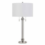 31" Silver Metallic Metal Two Light Cylinder Table Lamp With White Drum Shade