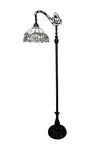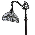 62" Brown Metal Arched Floor Lamp With White Geometric Stained Glass Shade