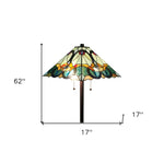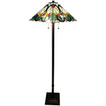 62" Espresso Two Light Torchiere Floor Lamp With Blue Flowers Glass Cone Shade