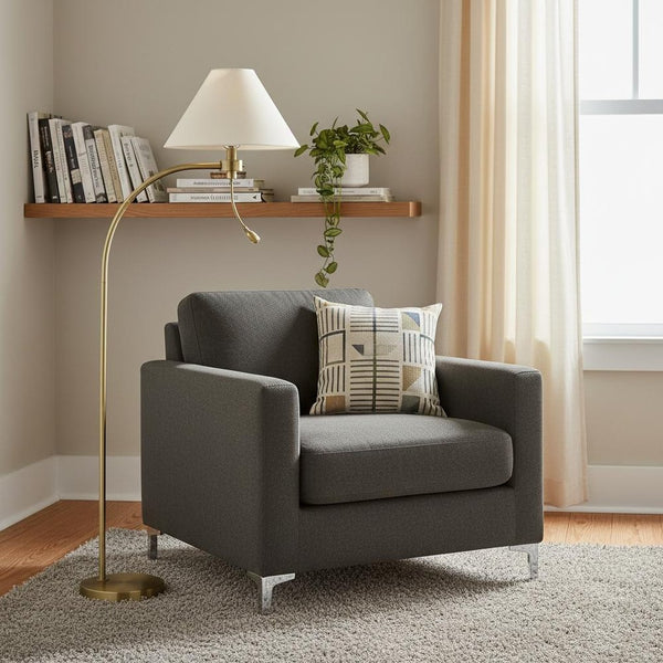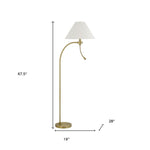 68" Antiqued Brass Metal Reading Floor Lamp With Off White Fabric Empire Shade