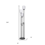 71" Black Three Light Traditional Shaped Floor Lamp With Clear Transparent Glass Novelty Shade