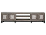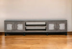 Create the ultimate blend of style, function, and design with this 93" gray solid wood cabinet enclosed storage distressed tv stand. Curated from a mix of high quality solid pine...