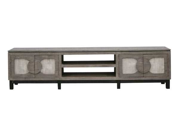 Make a true home theater of your room with this captivating 93" white solid wood cabinet enclosed storage distressed tv stand. Curated from high quality solid pine wood, this console...