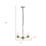 Antiqued Brass And Clear Chandelier Three Light Iron Ceiling Light With Clear Shades